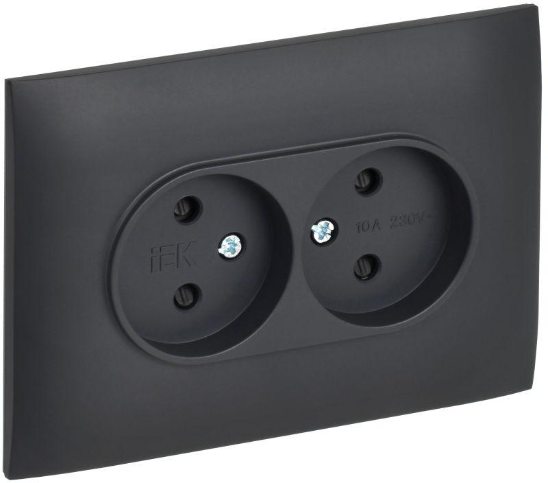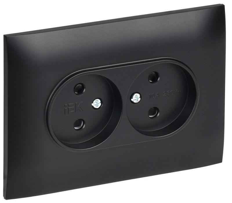 Розетка 2-м SKANDY 10А без заземл. защ. штроки в сборе SK-R09Bl черн. IEK SK-R23-10-K02-F