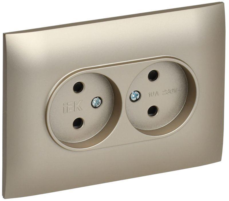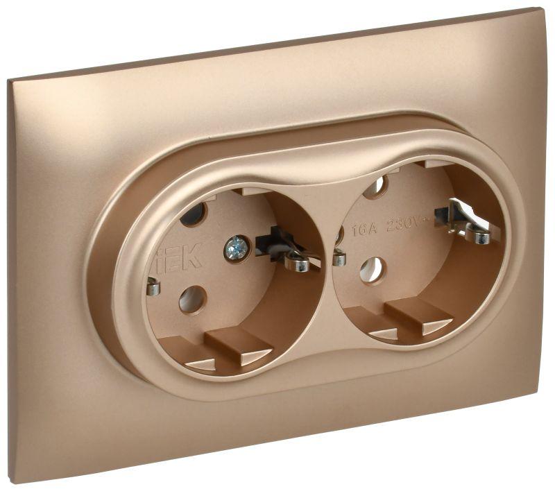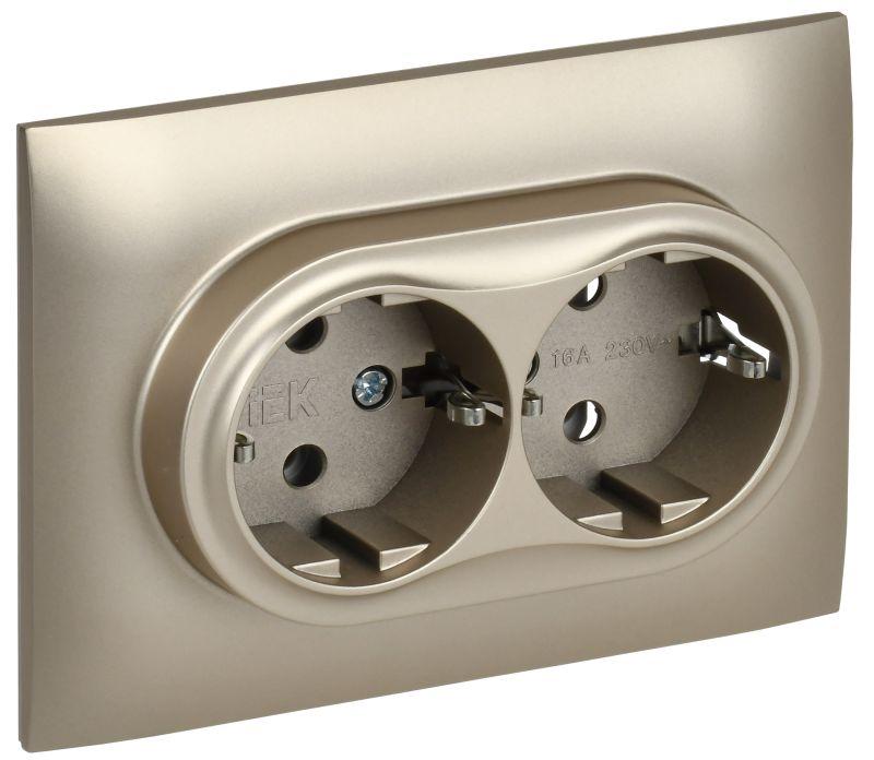 Розетка 2-м SKANDY 16А с заземл. без защ. шторок в сборе SK-R08Sh шампань IEK SK-R21-16-K37-F