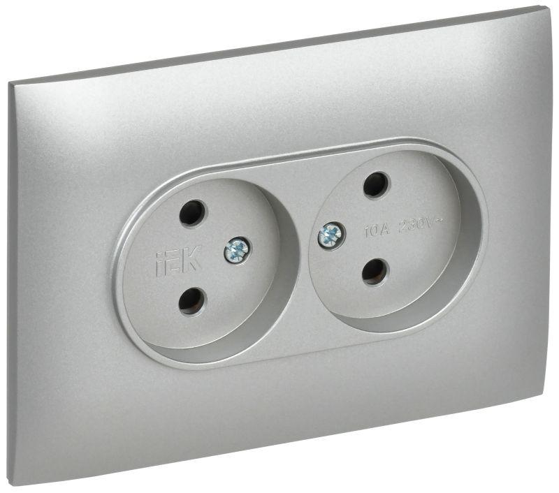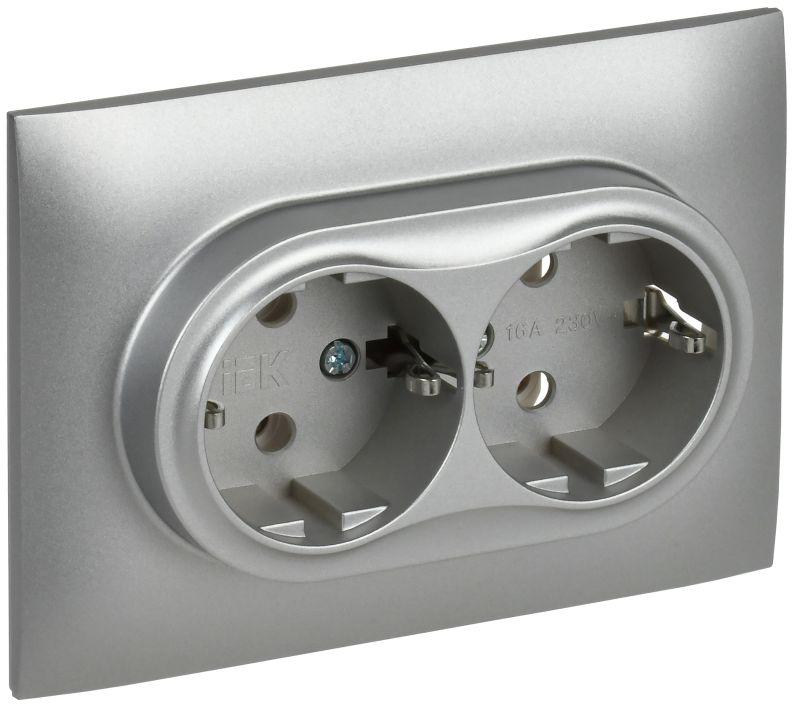 SK-R21-16-K23-F | Розетка 2-м SKANDY 16А с заземл. без защ. шторок в сборе SK-R08S серебр. IEK
