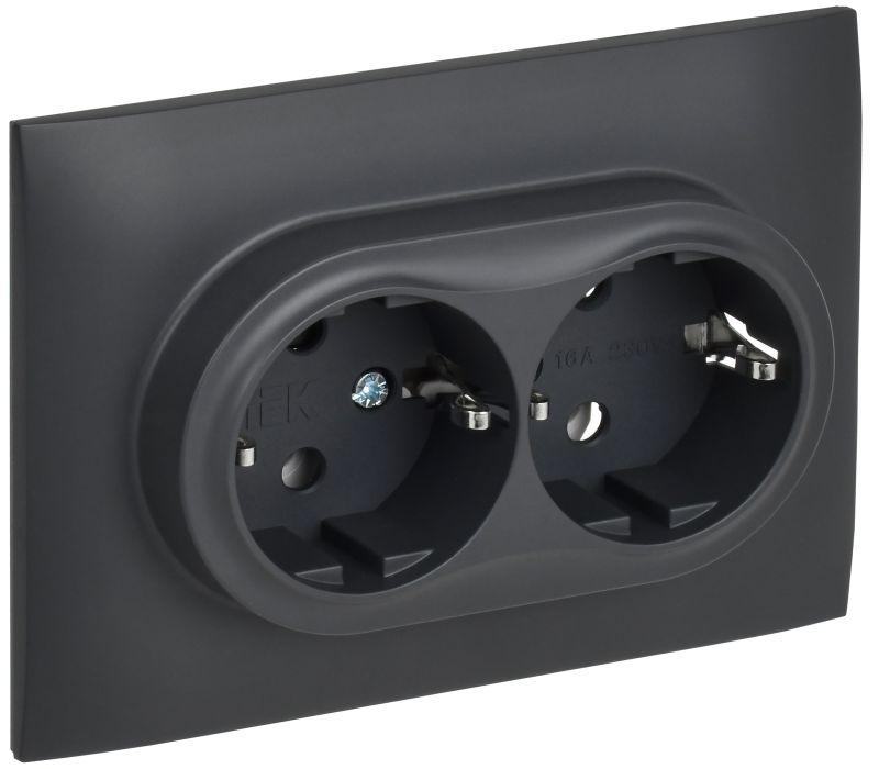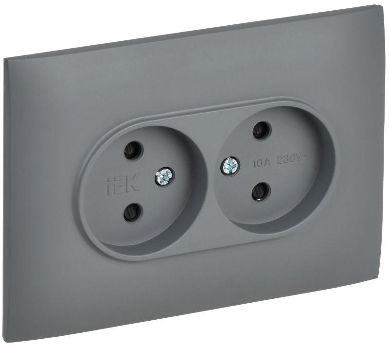 Розетка 2-м SKANDY 16А с заземл. без защ. шторок в сборе SK-R08Gr сер. IEK SK-R21-16-K03-F