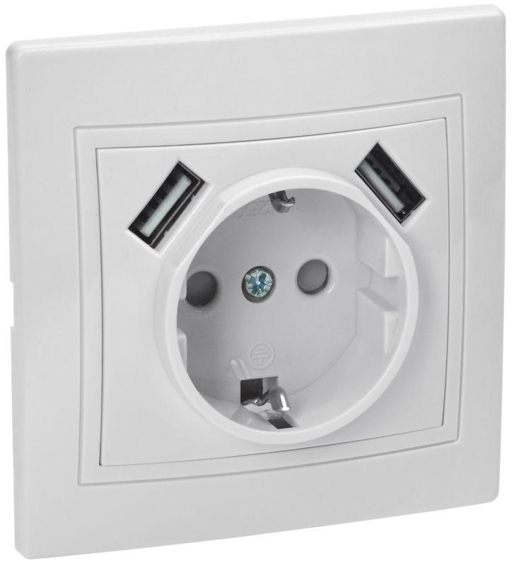 Розетка 1-м СП Кварта РЮш10-1-КБ 16А USBх2 2.1А с заземл. бел. IEK KV-R14-16-U2-K01