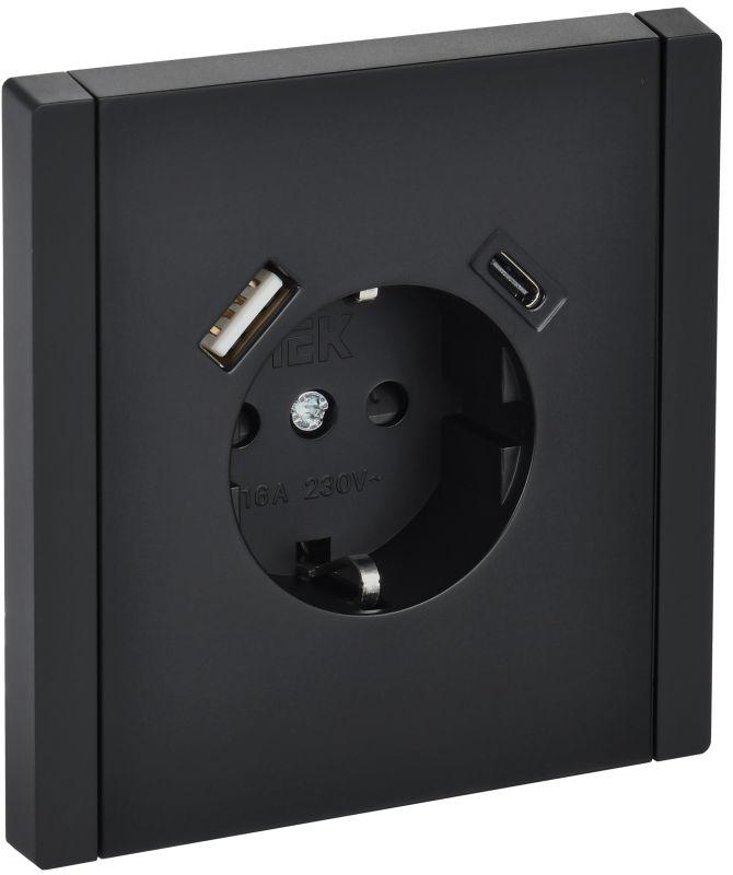 FP-R14-16-U22-018-K02 | Розетка FORTE&PIANO FP147 16А USB A+C 18Вт с заземл. защ. штроки винт. крепл. черн. IEK