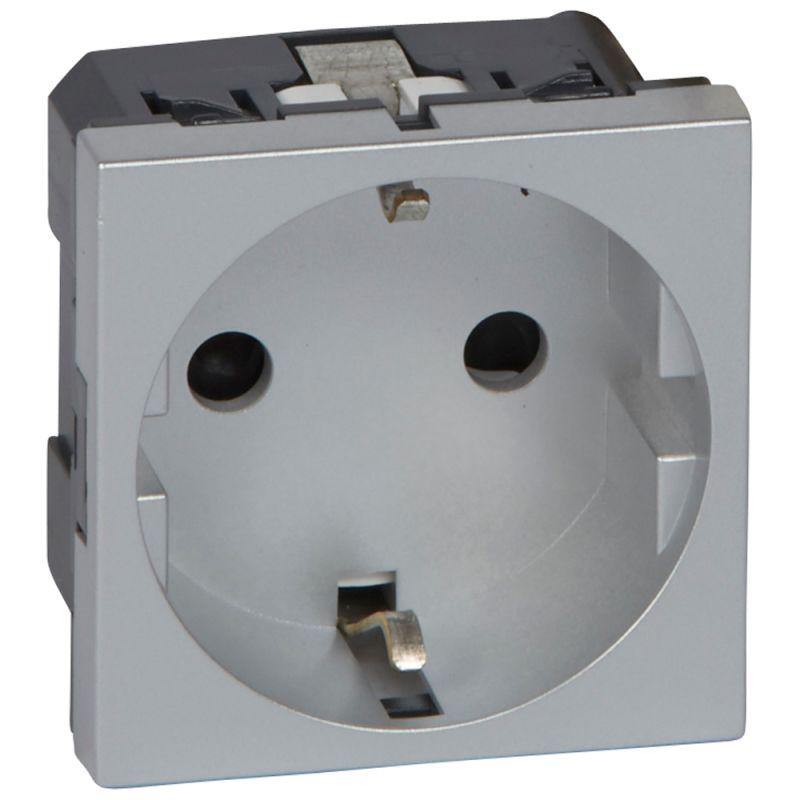 Розетка 1-м СП 2мод. Mosaic 16А IP20 правый с заземл. немецк. стандарт механизм алюм. Leg 079213