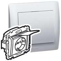 Розетка 1-м СП Galea Life 16А IP44 2P+E немецк. стандарт винтов. клеммы с бел. лицев. панелью механизм бел. Leg 775924