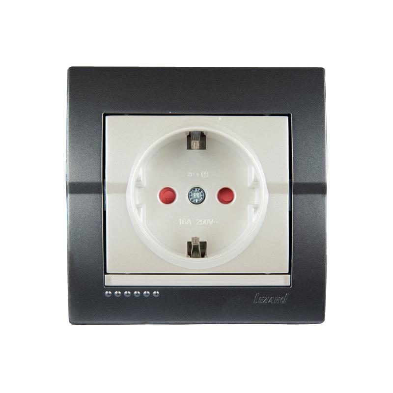 Розетка 1-м СП Deriy 16А IP20 с заземл. защ. шторки темн. сер./жемчуж. LEZARD 702-2930-124