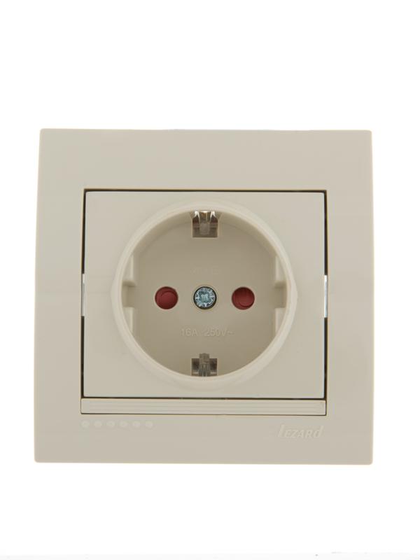 Розетка 1-м СП Deriy 16А IP20 с заземл. защ. шторки керамика крем. LEZARD 702-0303-124