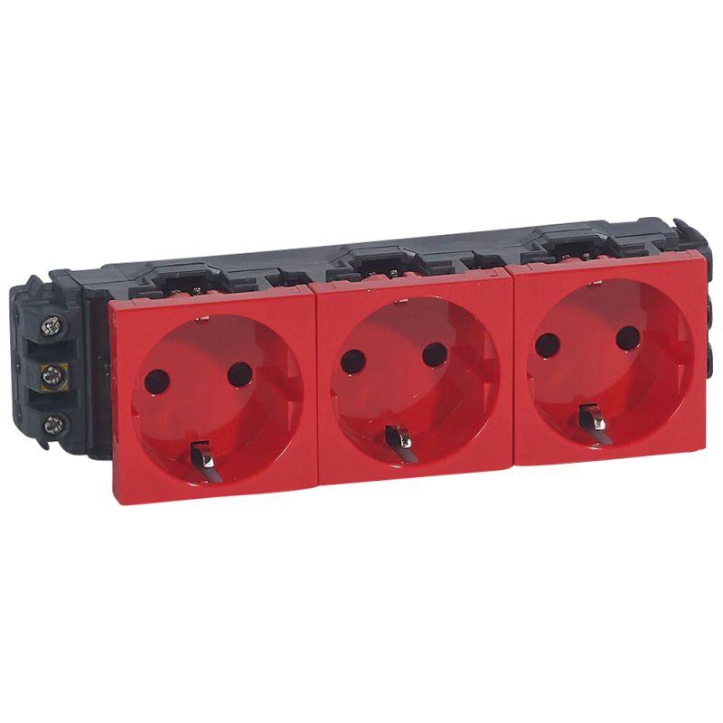 Розетка 3-м СП 6мод. Mosaic 16А IP20 2P+E немецк. стандарт безвинтов. клеммы с механич. блокировк. для кабель-канала DLP механизм красн. Leg 077423