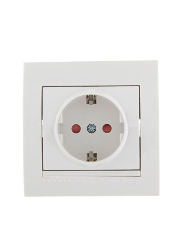 Розетка 1-м СП Deriy 16А IP20 с заземл. защ. шторки керамика бел./бел. LEZARD 702-0202-124