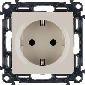 Розетка 1-м СП Bolero РС14-1-0-Б 16А IP20 с заземл. защ. шторки механизм крем. IEK ERB14-K33-16