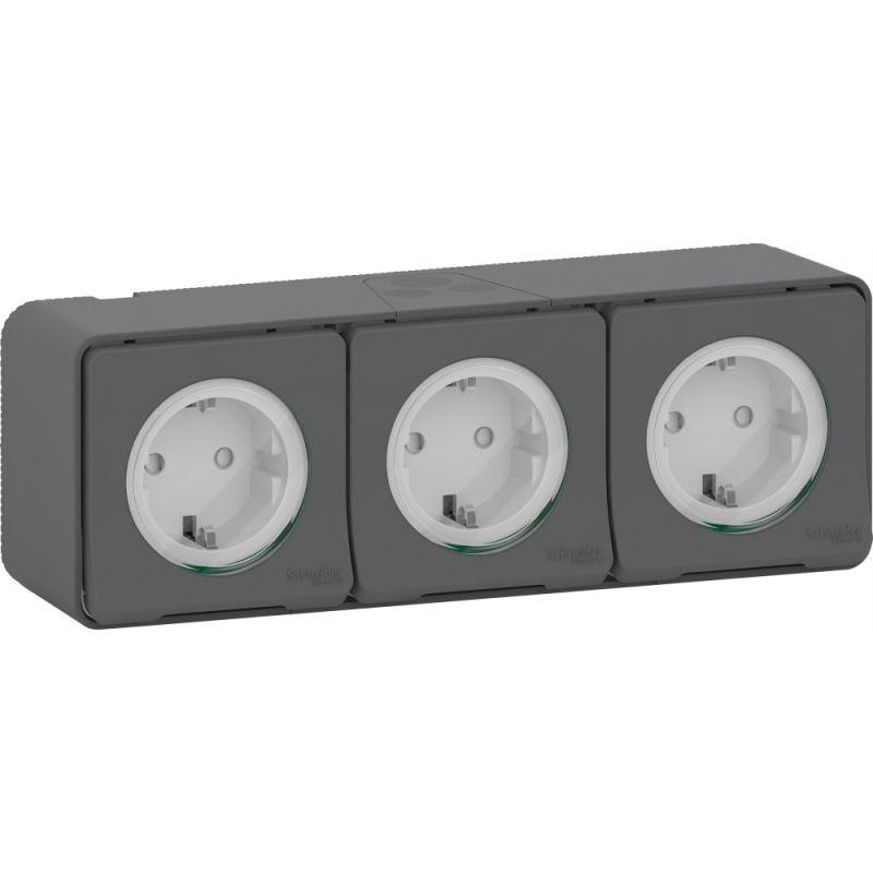 Блок розеточный 3-м ОП Mureva Styl 16А IP55 с заземл. винт. клеммы антрацит SchE MUR36038