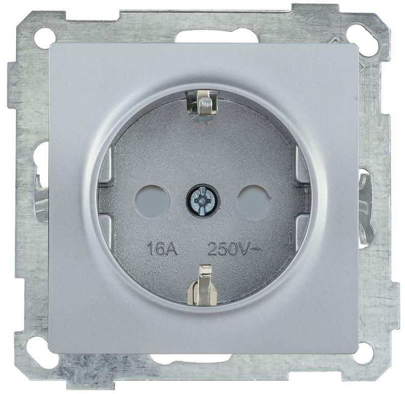 Розетка 1-м СП Bolero РС16-1-0-Б 16А IP20 с заземл. защ. шторки с крышкой механизм серебр. IEK ERB16-K23-16