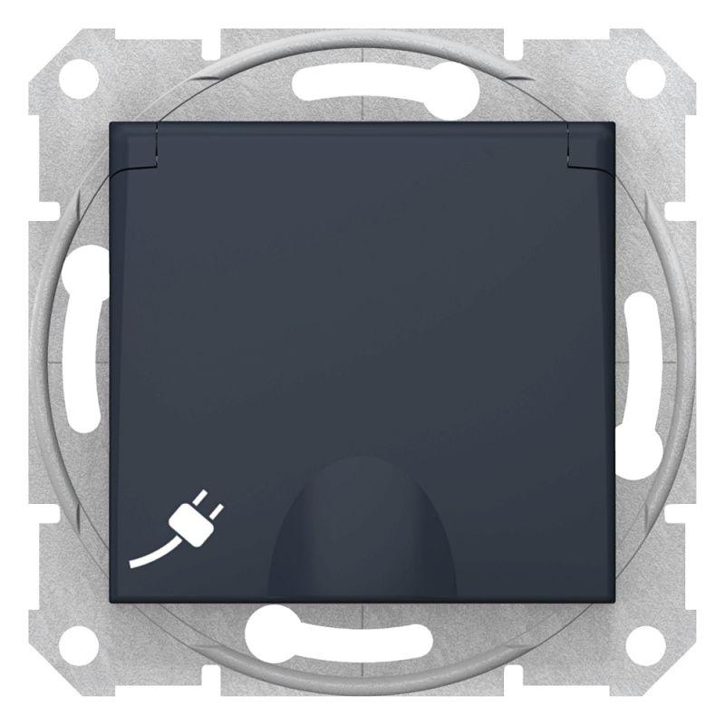 Механизм розетки UNICA NEW с защ. крышкой защ. шторки с заземл. 16А 250В IP40 антрацит SchE NU503754TA