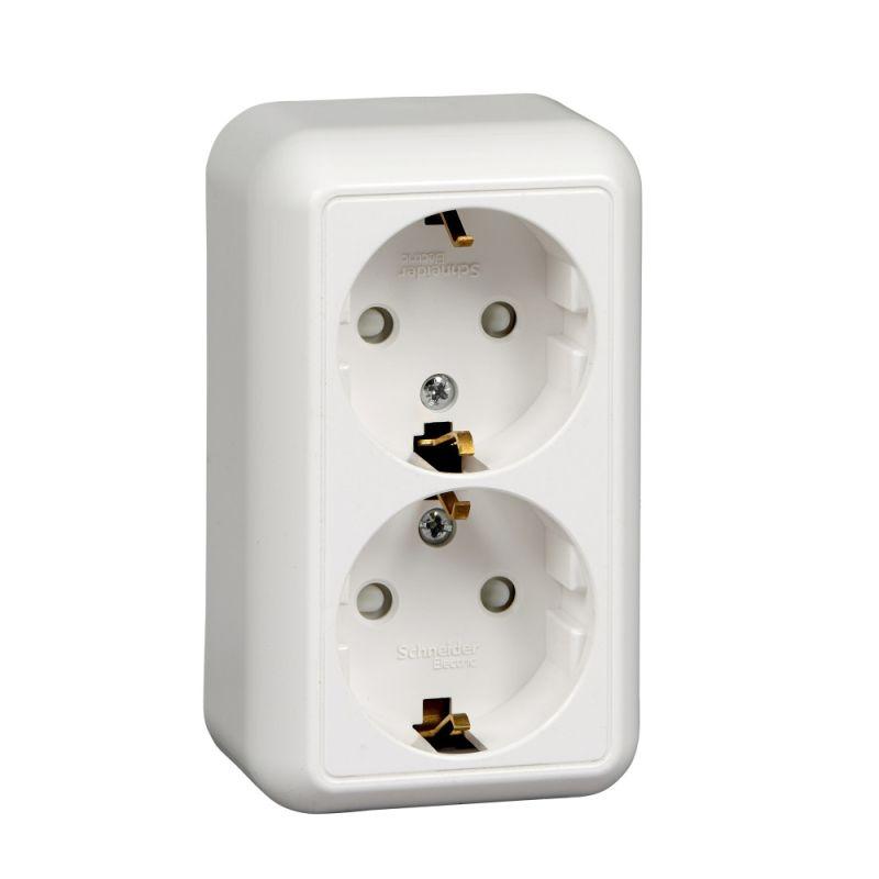 RA16-214I-BI | Розетка 2-м ОП Прима 16А 250В защ. шторки с заземл. изол. пласт. (розн. упак.) бел. SchE