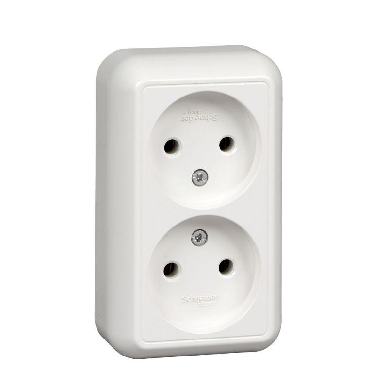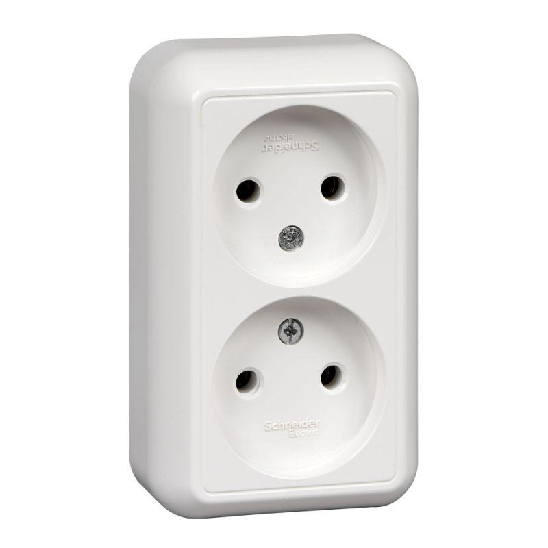 RA16-213I-BI | Розетка 2-м ОП Прима 16А IP20 без заземл. без защ. шторок изол. пласт. (розн. упак.) бел. SchE