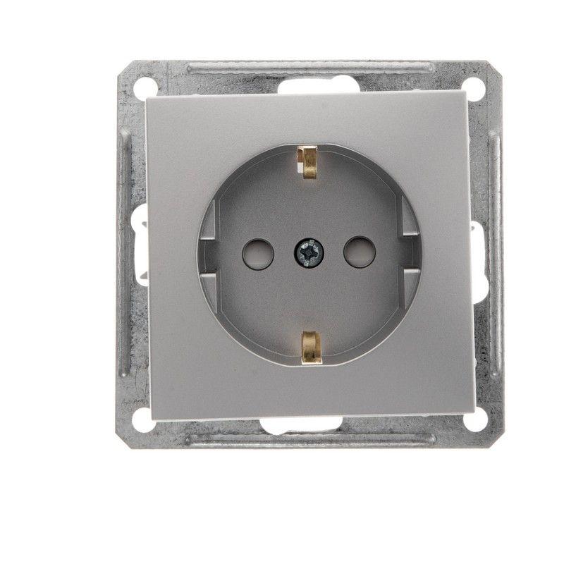 Розетка 1-м СП W59 16А IP20 с заземл. защ. шторки механизм матов. хром SE RS16-152-5-86