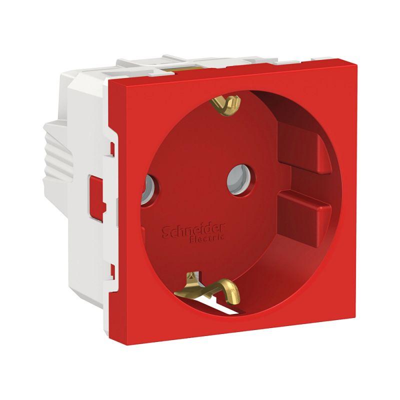 Розетка 1-м 2мод. Unica Modular 16А IP21 250В с заземл. защ. шторки винт. клеммы красн. SchE NU303703