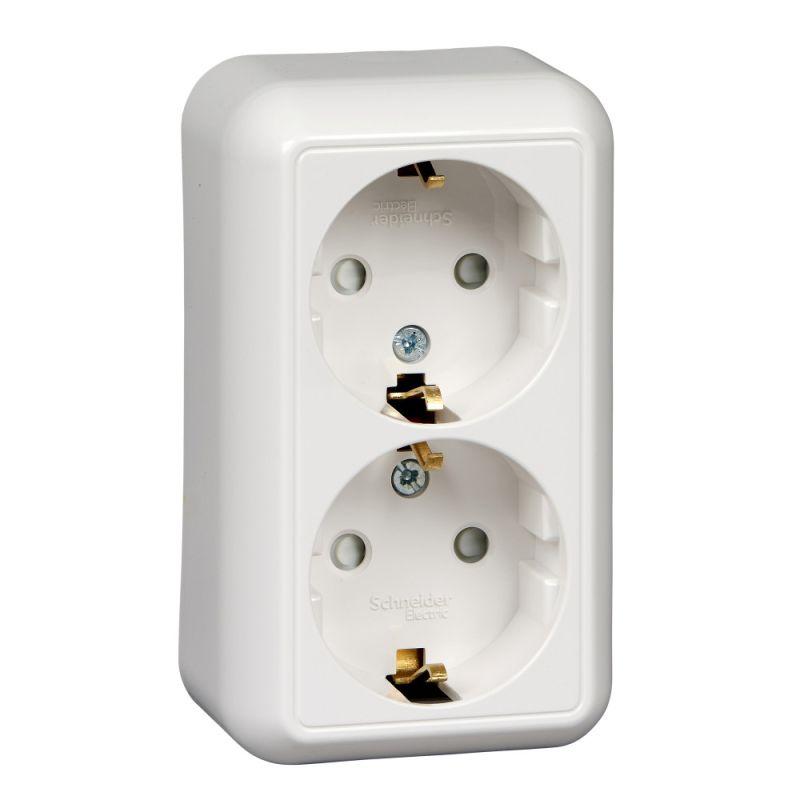 Розетка 2-м ОП Прима 16А 250В защ. шторки с заземл. (розн. упак.) бел. SchE RA16-214-BI