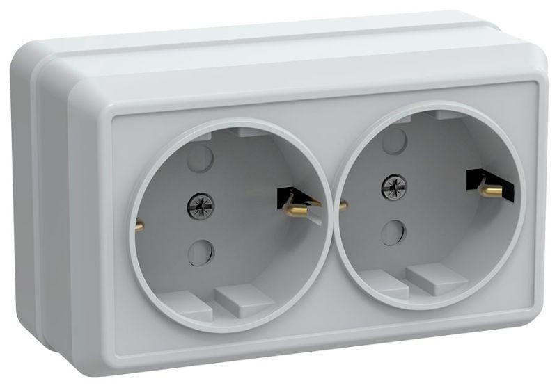 Розетка 2-м СП Севиль 16А IP24 с заземл. защ. шторки бел. UNIVersal С0050