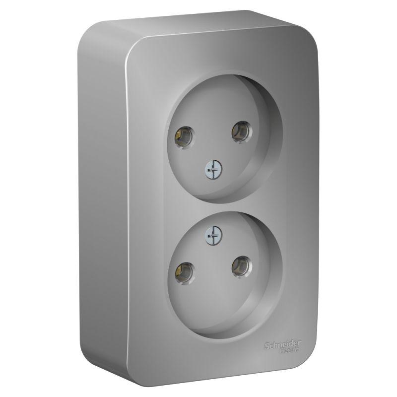701-1010-128 | Розетка 2-м СП Mira 16А IP20 без заземл. со вставкой керамика сер. метал. LEZARD