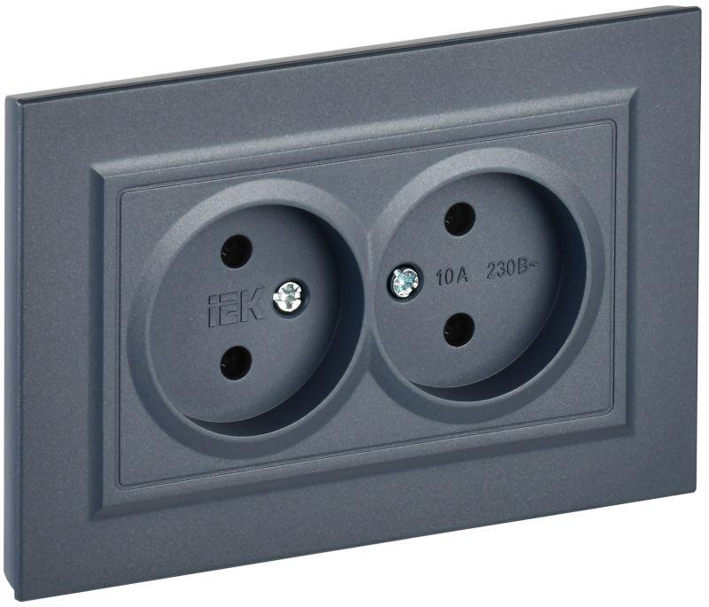 701-1010-127 | Розетка 2-м СП Mira 16А IP20 с заземл. со вставкой керамика сер. метал. LEZARD