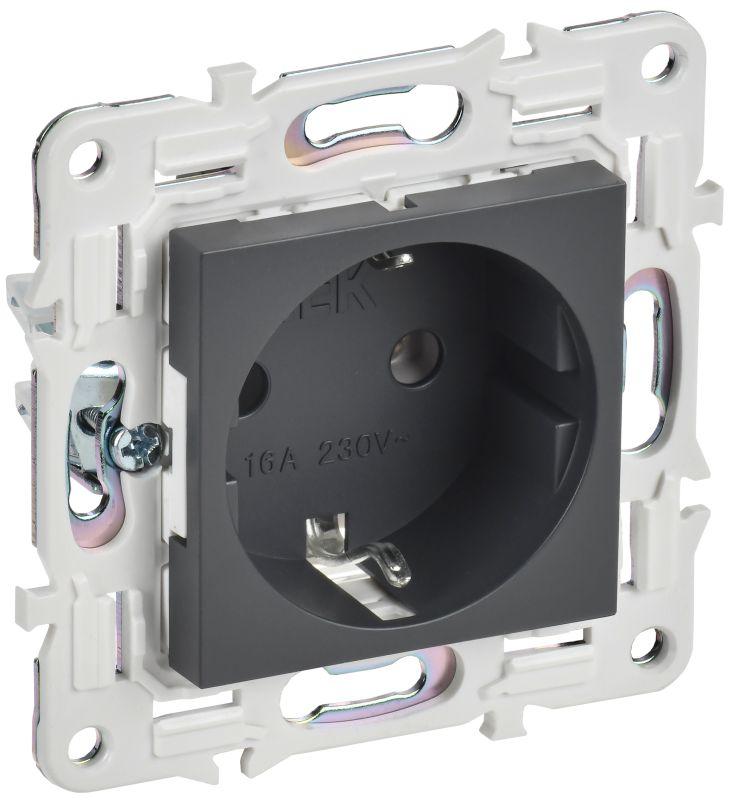 BR-R16-16-K02 | Розетка BRITE РСбш10-3-БрЧ 16А IP20 с заземл. защ. шторки с крышкой черн. IEK