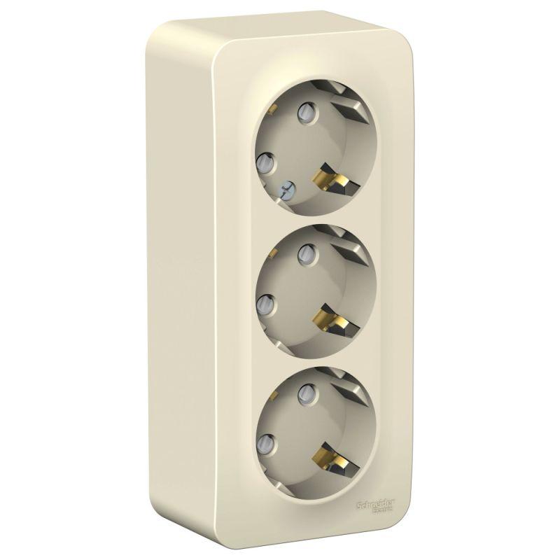 BLNRA011312 | Розетка 3-м ОП Blanca 16А IP20 250В с заземл. защ. шторки с изолир. пластиной молоч. SE