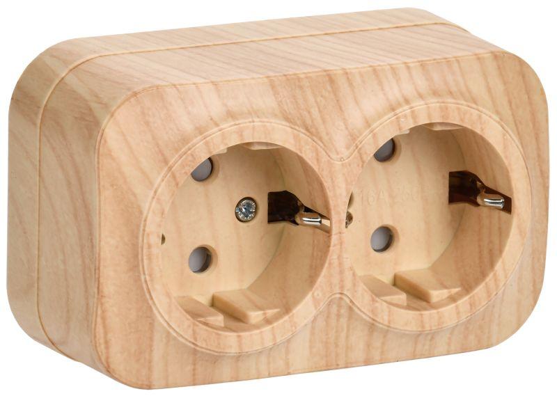 Розетка 2-м ОП Quteo 16А IP20 250В 2х2P+E с заземл. без защ. шторок дерево Leg 782293