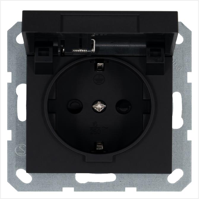 SK-R24-16-K02-F | Розетка 2-м SKANDY 16А с заземл. защ. штроки в сборе SK-R07Bl черн. IEK