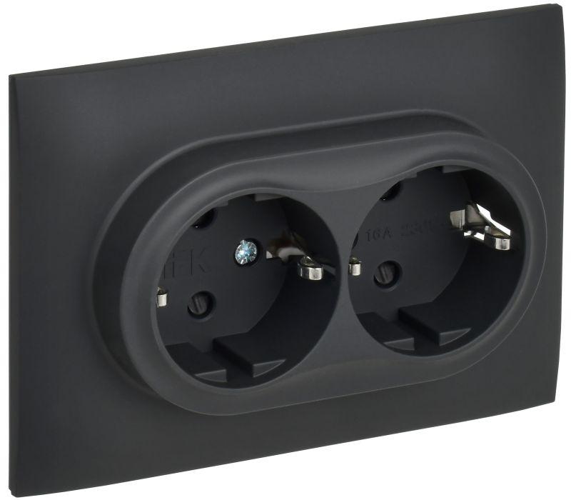SK-R24-16-K53-F | Розетка 2-м SKANDY 16А с заземл. защ. штроки в сборе SK-R07G графит IEK