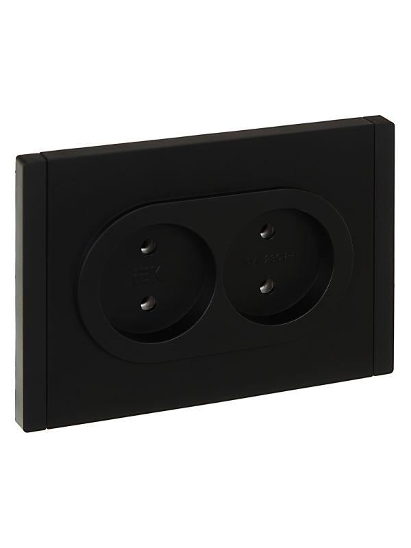Розетка 2-м СП FORTE&PIANO FP126 10А без заземл. без защ. шторок безвинт. крепл. черн. IEK FP-R20-10-1-K02