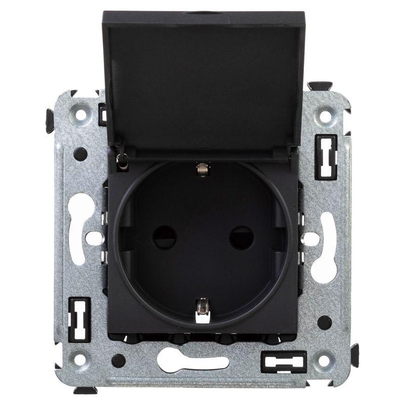 4412013 | Розетка 1-м СП 2мод. Avanti "Черный матовый" 16А 2P+E защ. шторки с крышкой механизм черн. DKC