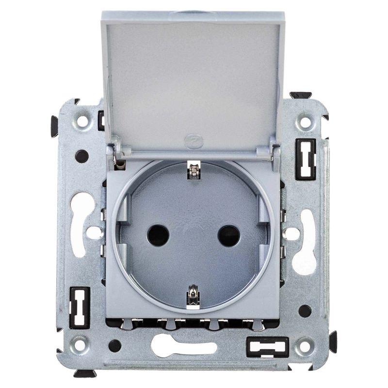 Розетка 1-м СП 2мод. Avanti "Закаленная сталь" 16А 2P+E защ. шторки с крышкой сер. DKC 4404013