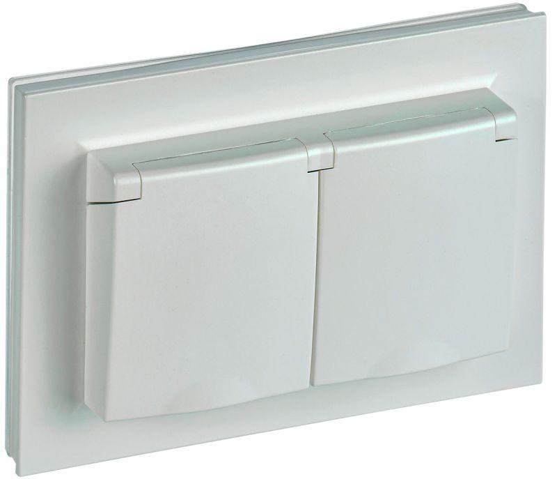 707-0200-128 | Розетка 2-м СП Karina 16А IP20 без заземл. керамика бел. LEZARD
