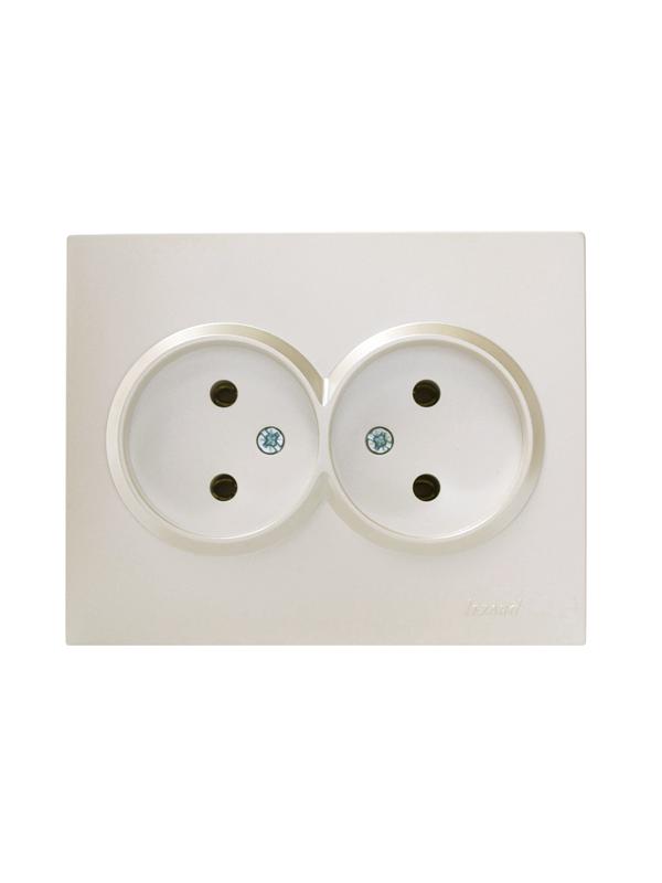 701-0202-127 | Розетка 2-м СП Mira 16А IP20 с заземл. с бел. вставкой керамика бел. LEZARD
