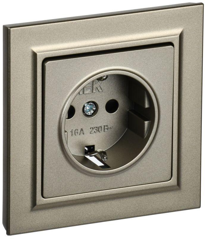 Розетка СП BRITE РСР14-1-0-БрШ 16А в сборе с заземл. защ. шторки шампань IEK BR-R14-16-K37-F