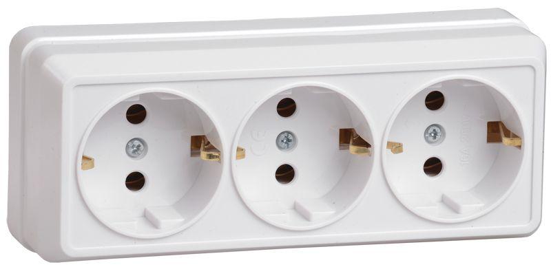 Розетка 3-м ОП Октава РС23-3-ОБ 16А IP20 с заземл. бел. IEK ERO31-K01-16-DC