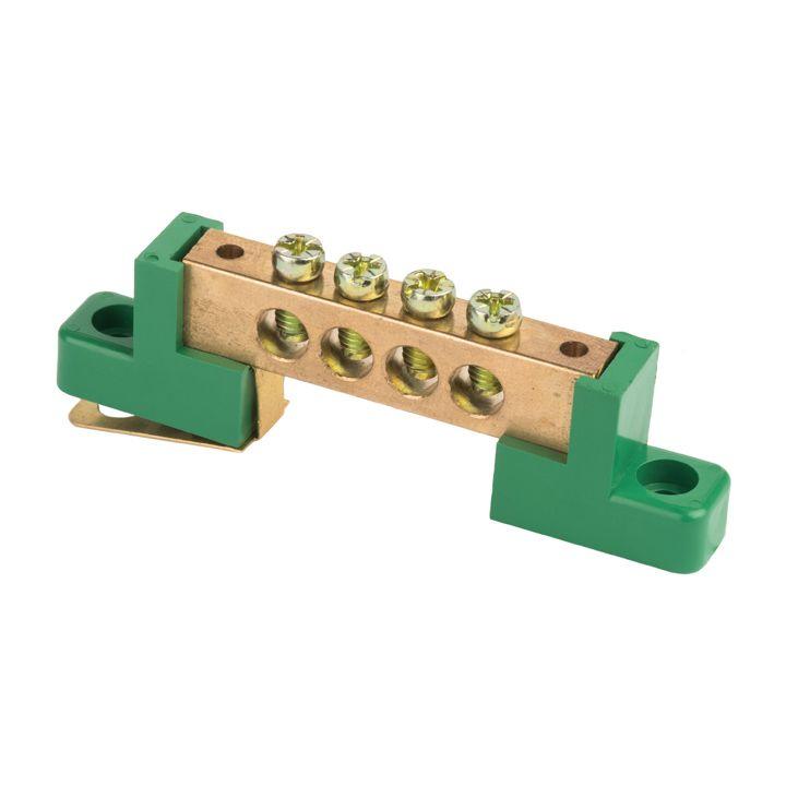 Шина нулевая PE 8х12 4 отвер. латунь с контактной пластиной 2 зел. угловых изолятора PROxima EKF sn0-125-04-2-pe