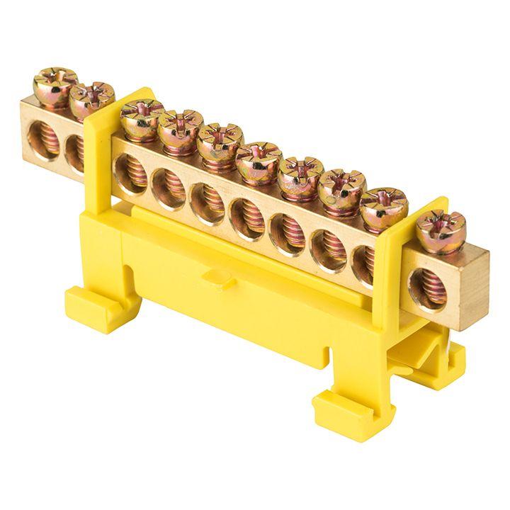 Шина нулевая PE 6х9 10 отверстий желтый изолятор тип "Стойка" на DIN-рейку латунь PROxima EKF sn0-63-10-sy