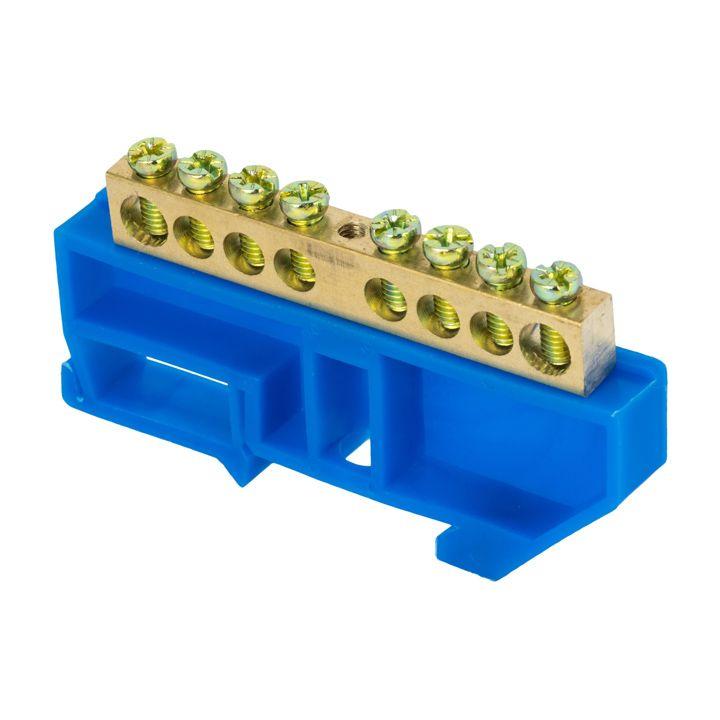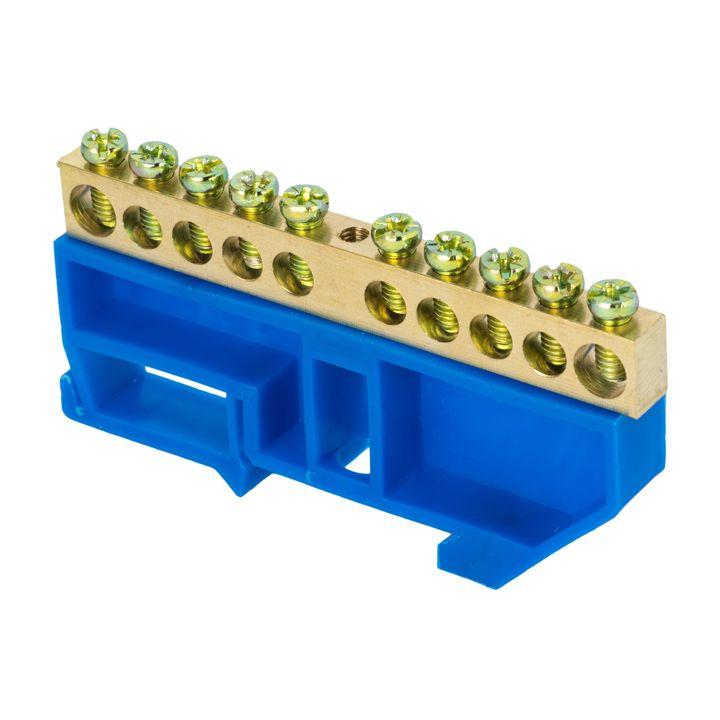 Шина нулевая N 8х12 10 отверстий синий изолятор на DIN-рейку латунь розн. стикер PROxima EKF sn0-125-10-d-r