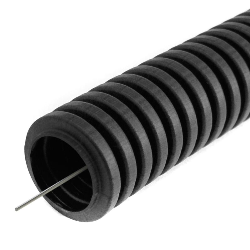 Труба гофрированная ПНД легкая d25мм с протяжкой 350 Н безгалоген. (HF) стойкая к УФ черн. (уп.50м) Промрукав 161558