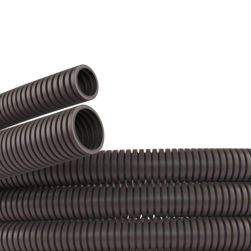 Труба гофрированная ПА 6 d48мм dвнутр.47.4мм dвнешн.54.5мм без протяжки ПВ-0 темн. сер. (уп.15м) DKC PA604855F0