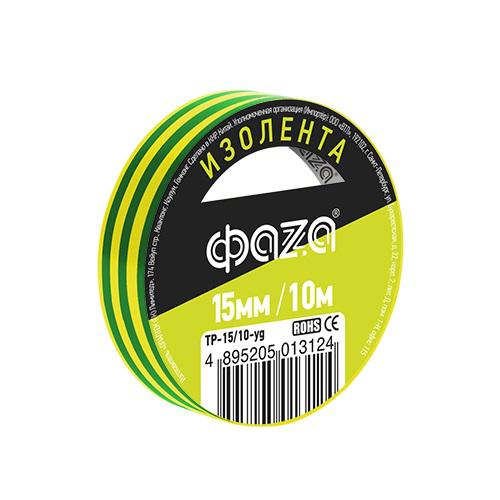 5013124 | Изолента ПВХ 15мм (рул.10м) желт./зел. ФАZА