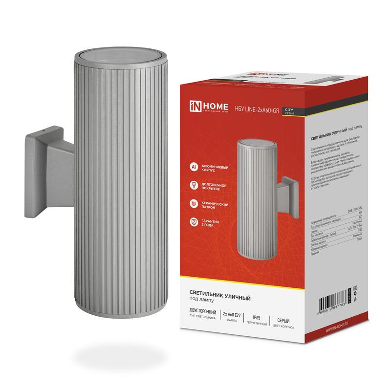 4690612037714 | Светильник НБУ ART-2хA60-GR CITY E27 IP65 230В уличный двусторон. алюм. под лампу 2хA60 сер. IN HOME
