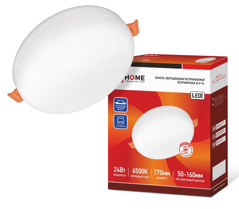 Светильник светодиодный RLP-FL 24Вт 6500К IP20 2160лм 230В 170мм с рег. монтаж. 45-140мм встраив. безрамочн. панель бел. IN HOME 4690612036748
