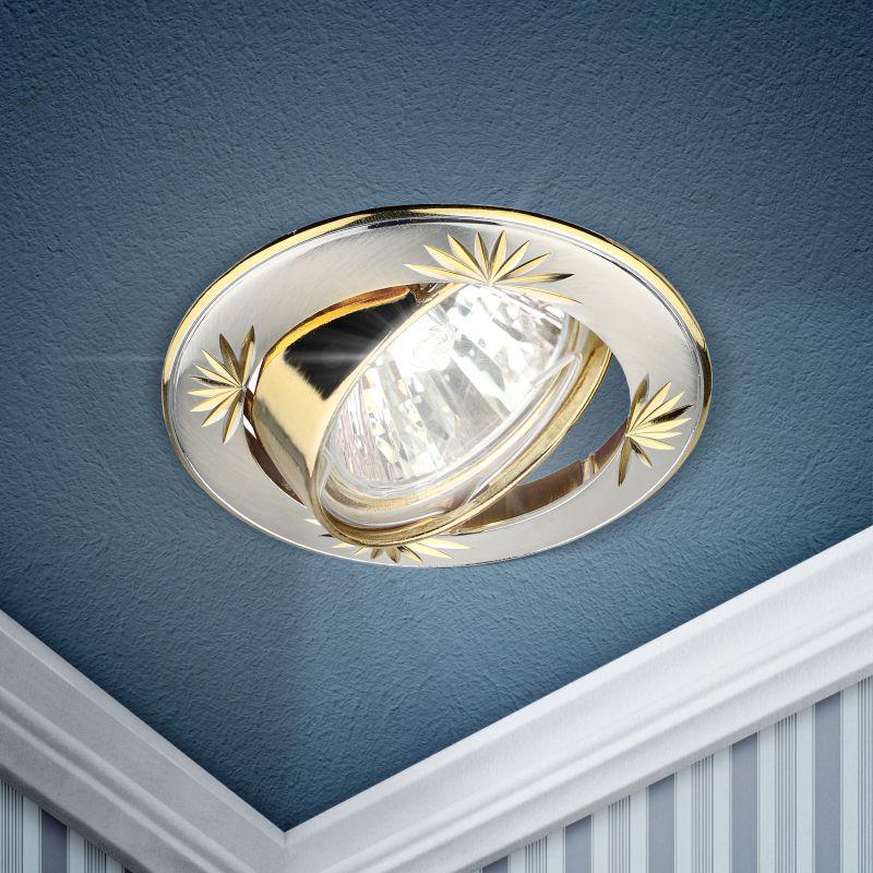 Светильник KL3A SS/G 50Вт MR16 12В точечный литой круглый поворот. с гравировкой сатин серебр./зол. (1/100) ЭРА C0043663