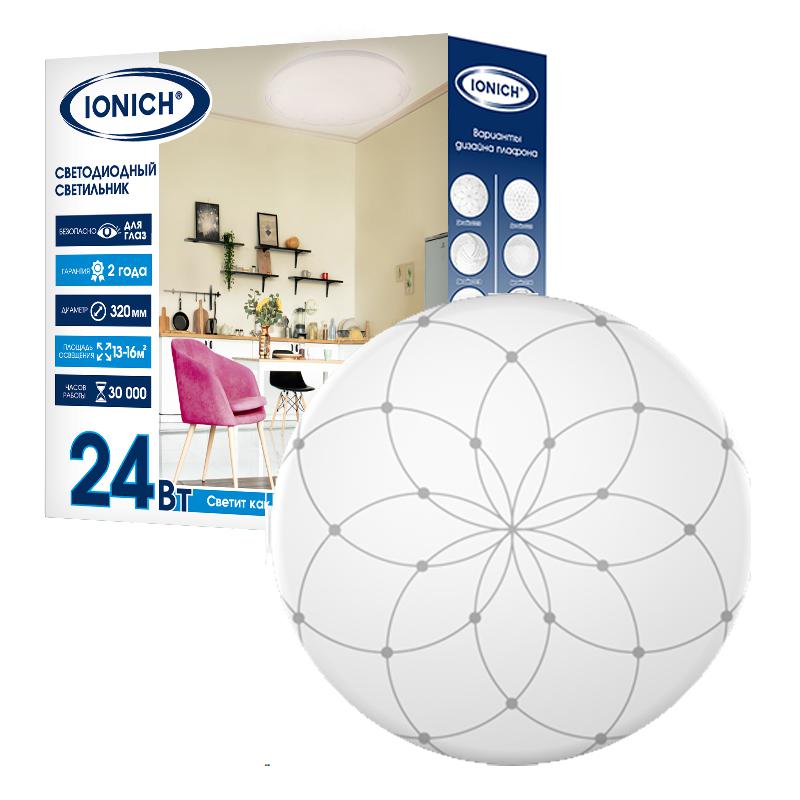 Светильник светодиодный 2218 24Вт 6500К IP20 1680лм d320х60мм бытовой настенно-потолочный IONICH 1693