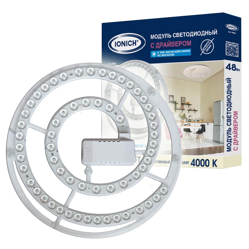 Модуль светодиодный высокой мощности для декоративных светильников 48Вт 4800лм 230В 6500К d260х25мм IP20 IONICH 2081