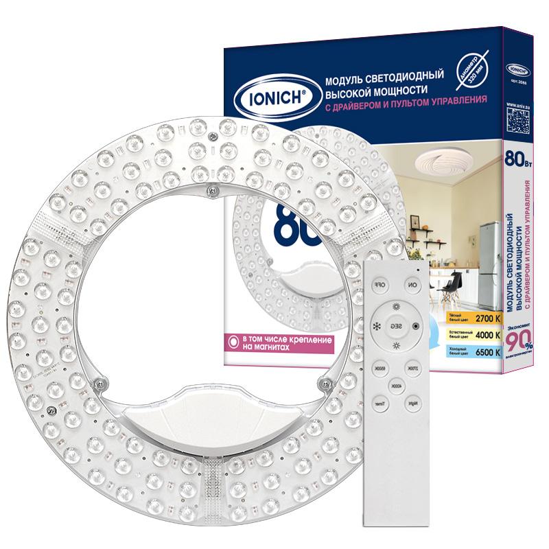 Модуль светодиодный высокой мощности с пультом ДУ для декоративных светильников 80Вт 230В 3000-6500К d320мм диммир. IP20 IONICH 2088