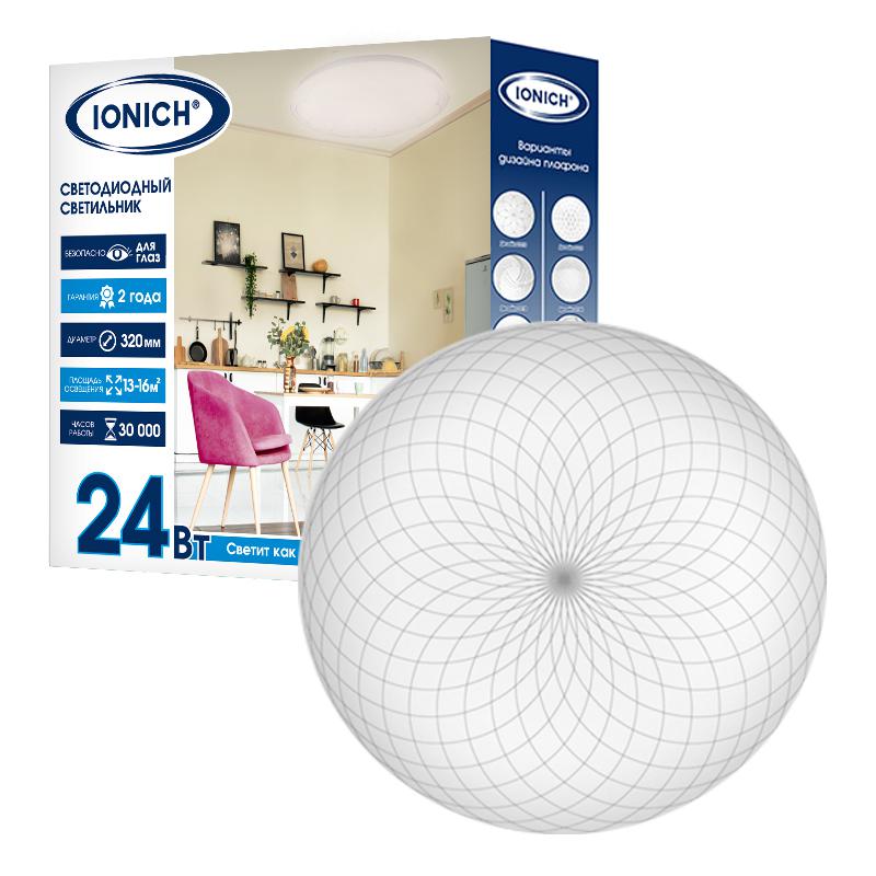 Светильник светодиодный 2218 24Вт 4000К IP20 1680лм d320х60мм бытовой настенно-потолочный IONICH 1692