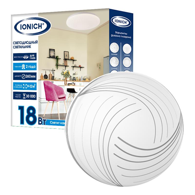 Светильник светодиодный 2218 18Вт 4000К IP20 1260лм d260х55мм бытовой настенно-потолочный IONICH 1690